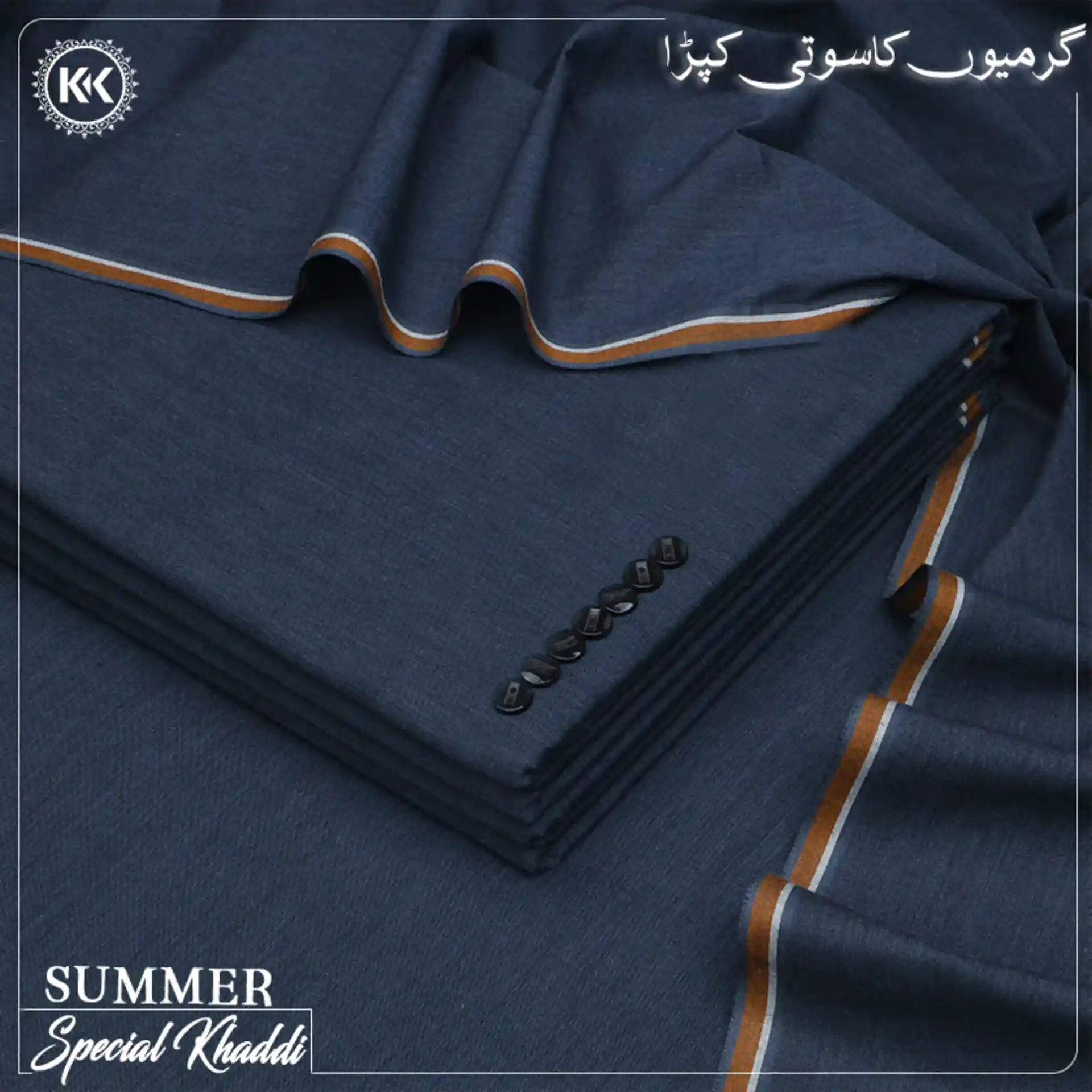 Summer Special Khaddi Fabric is a high-quality fabric specifically designed for the summer season. It is made from 100% cotton, which is a natural and breathable fiber, perfect for hot and humid weather. The fabric has a soft and lightweight texture, providing comfort and ease of movement during the warmer months.